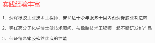 從事橡膠工業多年,庫存規格齊全,當天發貨,引用日本先進的制管技術,滿足不同客戶的需求,您的滿意,是我們的追求,歡迎廣大客商洽談合作!